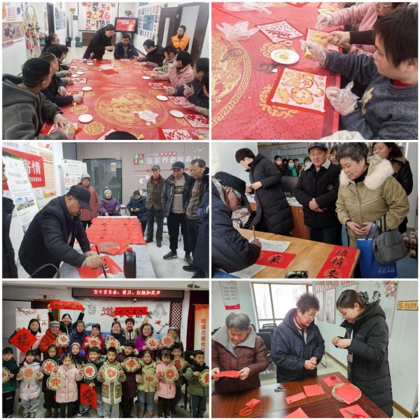 福寿之家老年关爱服务社志愿者携手天宁区残联活动中心、钟楼区永红街道广成路社区,开展福字拓印活动,居民们纷纷参与、晕染出雅致的“福”字作品,沉浸式体验传统文化;在钟楼区五星街道新民村委、清潭五社区、怀德名苑社区,书法老师挥毫泼墨,将马年的美好愿景凝于笔端,居民们围拢挑选,脸上满是欢喜;香江华庭社区的剪窗花现场则尽显精巧,红纸在指尖翻转裁剪,一个个寓意吉祥的纹样逐渐成型,寄托着大家对新年的无限憧憬与美好期许。